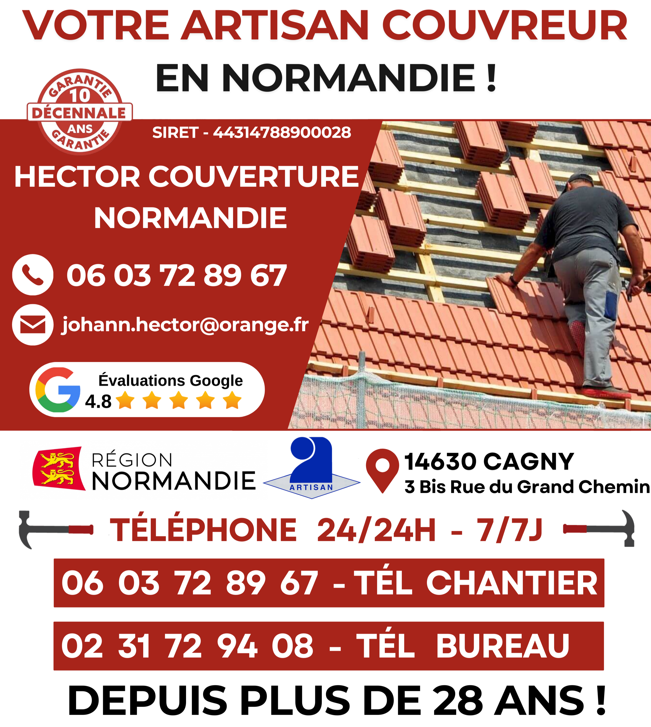 HECTOR Couverture Normandie est intervenu chez nous pour une fuite de toiture. Travail sérieux, soigné et terminé dans la journée. Très satisfait du résultat.