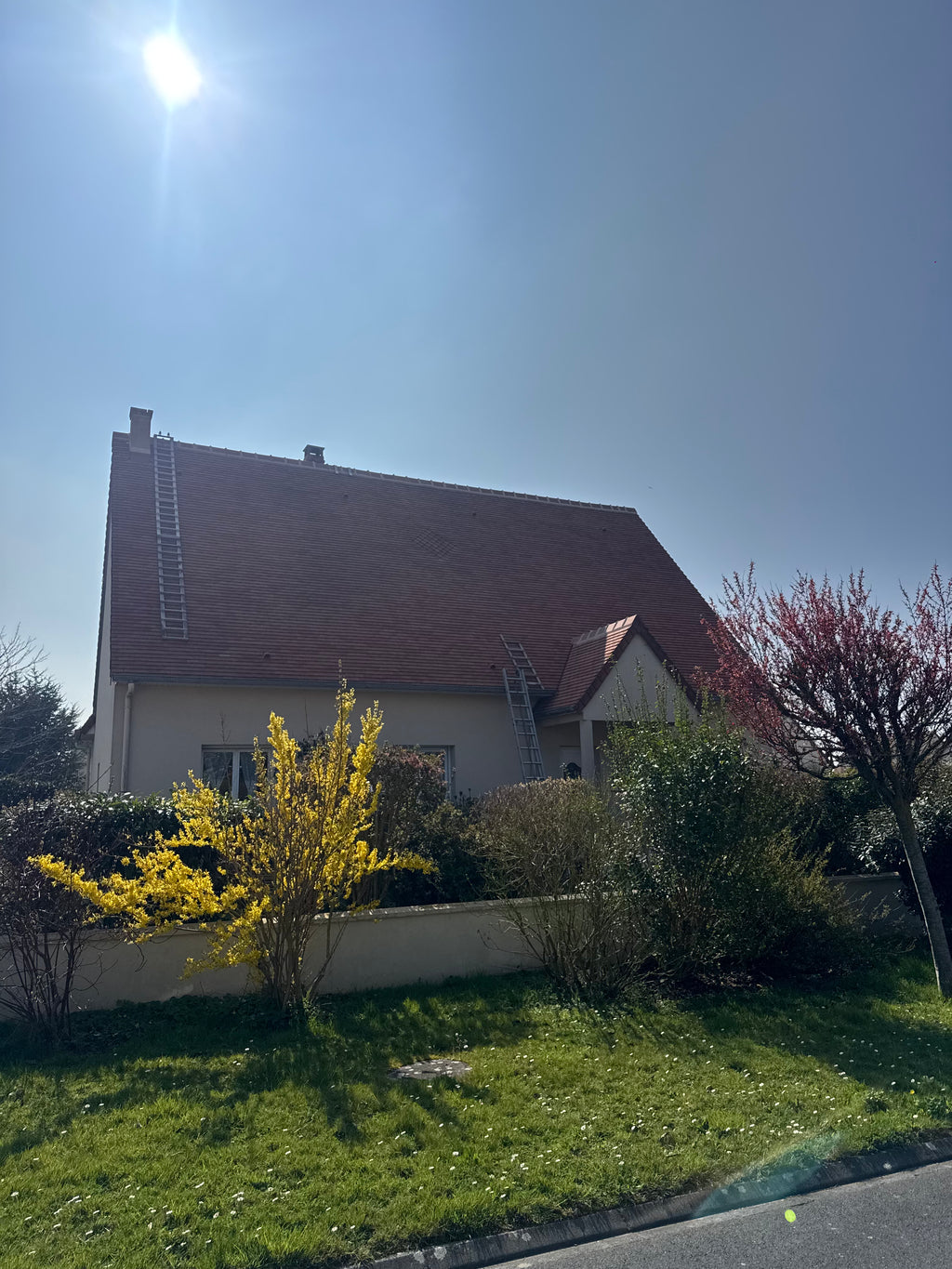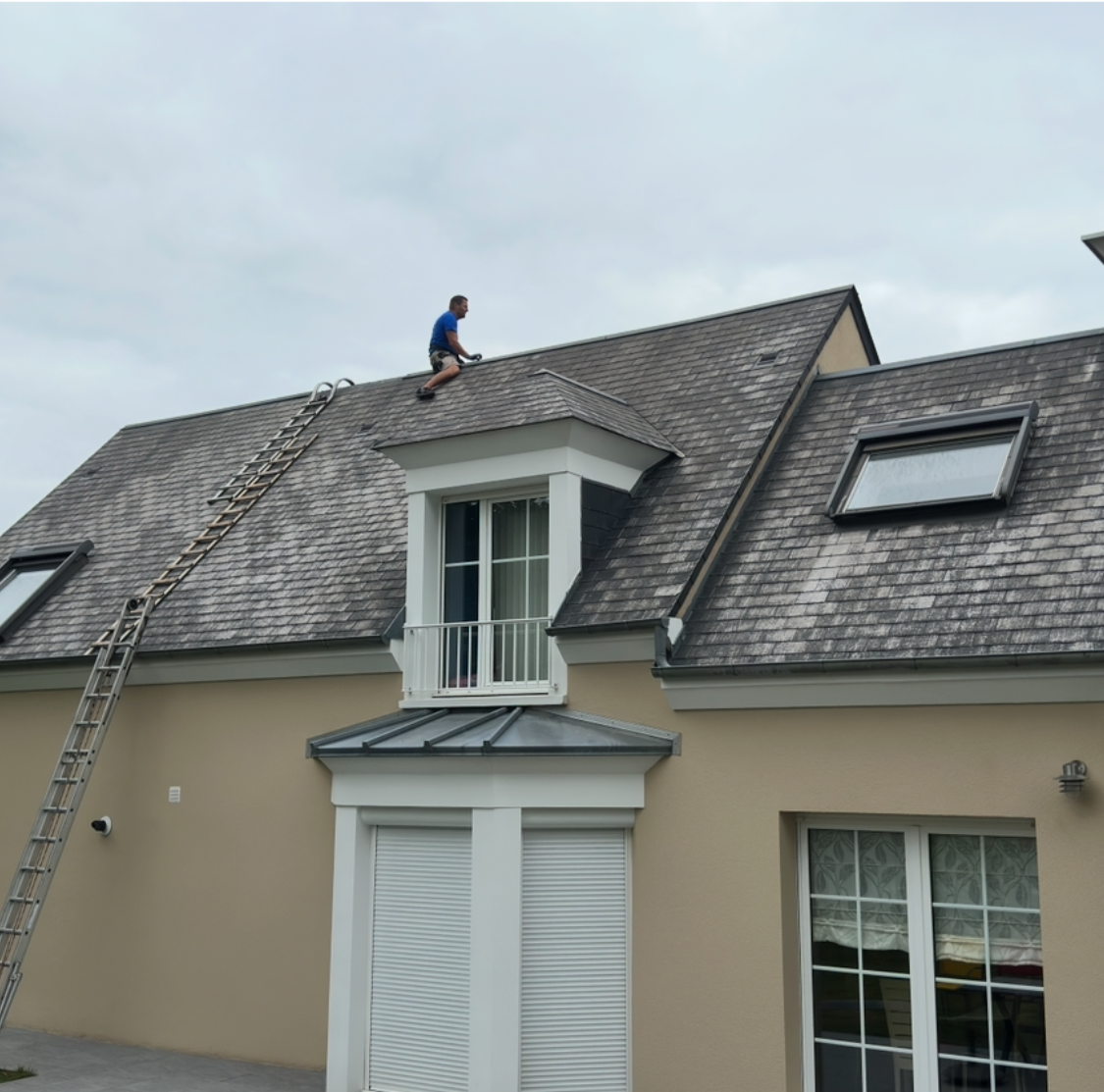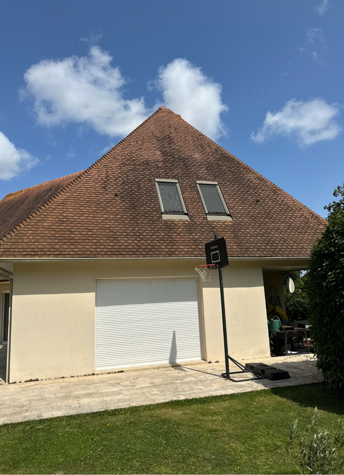 Réalisation d’une peinture de toiture avec un hydrofuge coloré, effectuée le 17 juillet à Ouistreham. Cette intervention a permis de redonner éclat et protection à la toiture, tout en renforçant son étanchéité face aux intempéries normandes.