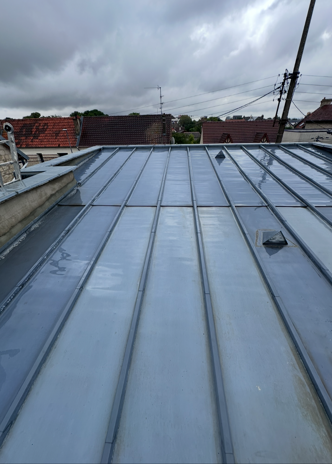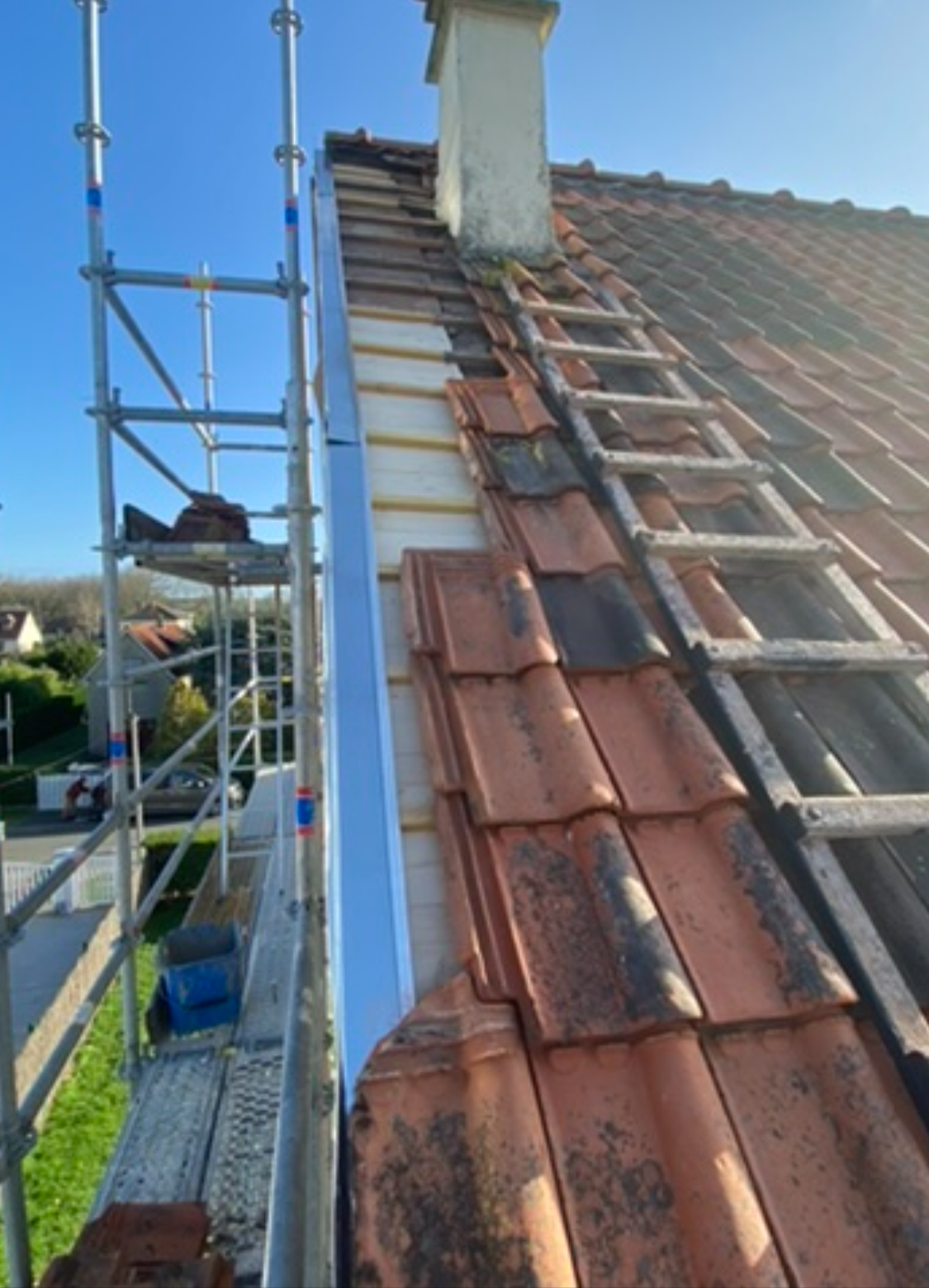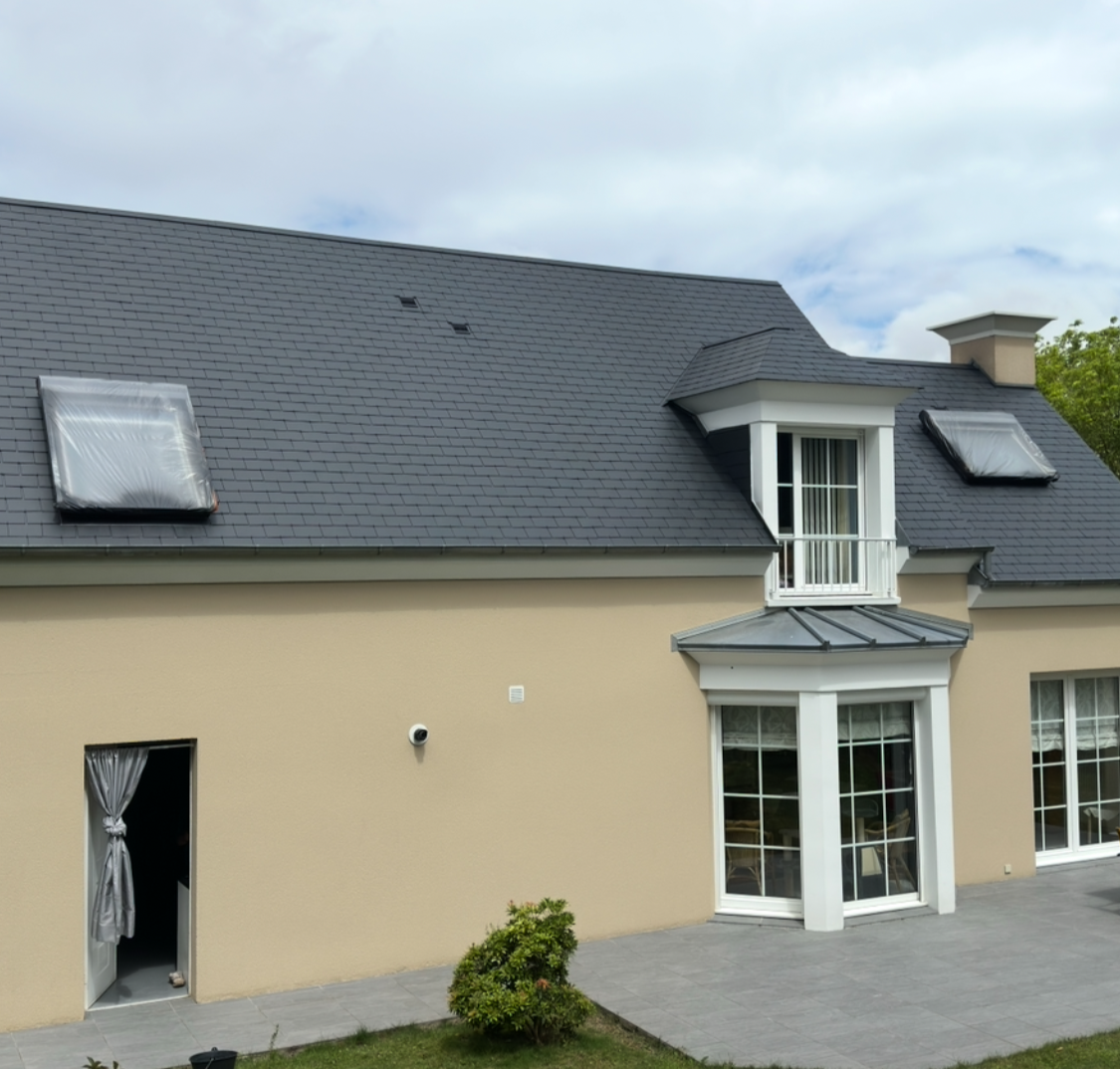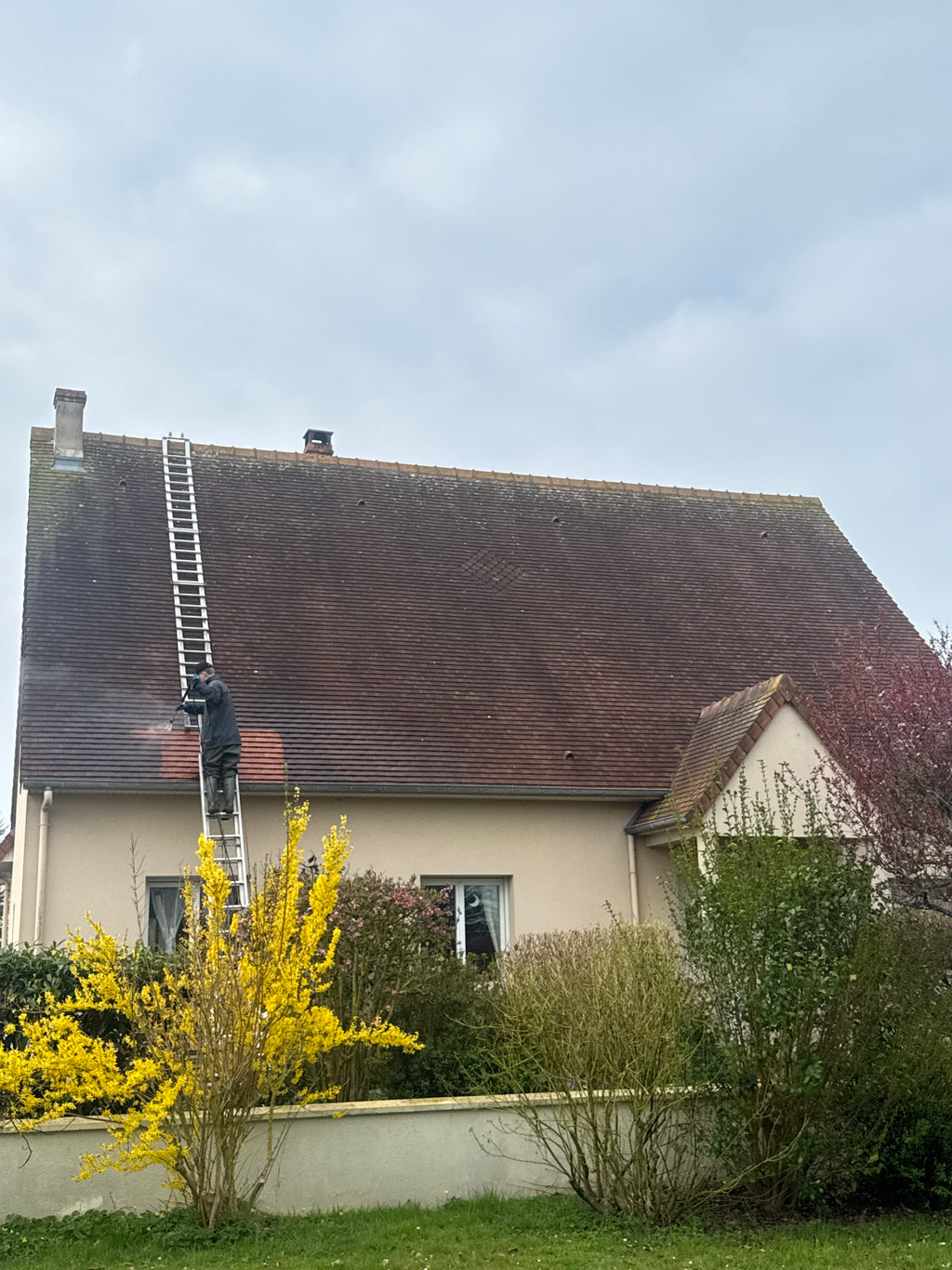 Réalisation d’une peinture de toiture avec un hydrofuge coloré, effectuée le 17 juillet à Ouistreham. Cette intervention a permis de redonner éclat et protection à la toiture, tout en renforçant son étanchéité face aux intempéries normandes.